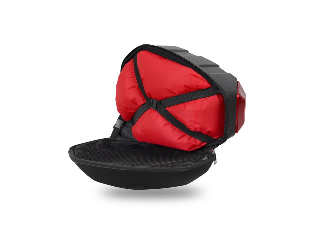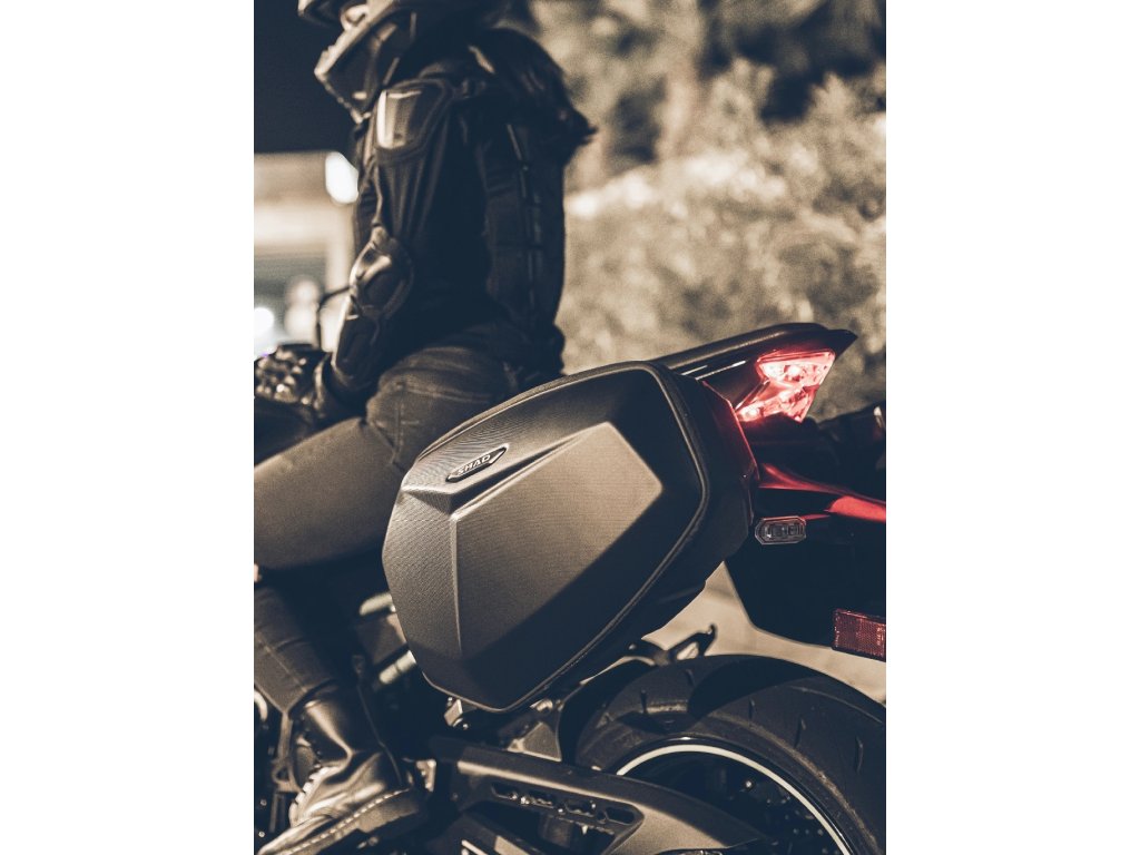 Bočné tašky E48SR s vystuženou škrupinou majú každý kapacitu 15 litrov, dohromady teda 30 L. Montujú sa na montážnu sadu SR, ku ktorej sú zamknuté az motocykla ich možno ľahko demontovať, ak máte kľúčik. Montážna výstuž na zadnej strane kufra je vytvorená z ľahkého a odolného materiálu - kombinácia polyamidu a sklených vlákien. Tašku samotnú je možné uzamknúť pomocou zámku jazdcov zipsu. Tašky skvele vyzerajú na motocykloch kategórie naked. Červený segment v zadnej časti kufra slúži nielen ako bezpečnostný a dizajnový prvok, ale aj ako madlo pre ľahkú demontáž a manipuláciu s taškou. Súčasťou balenia je aj vnútorná taška, ktorá v kombinácii so zipsom a odolným ABS materiálom chráni interiér proti vode. Na taškach sú reflexné prvky, ktoré zvyšujú vašu viditeľnosť a bezpečie v prevádzke. Vnútri tašky nájdete sieťku na zips a pásky na zaistenie a lepšiu organizáciu nákladu. Aktuálny online katalóg výrobcu - kliknite tuDodatočné parametre