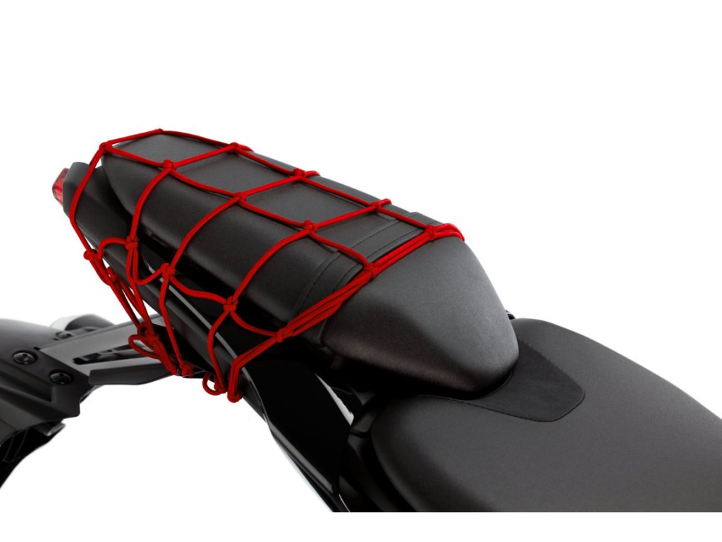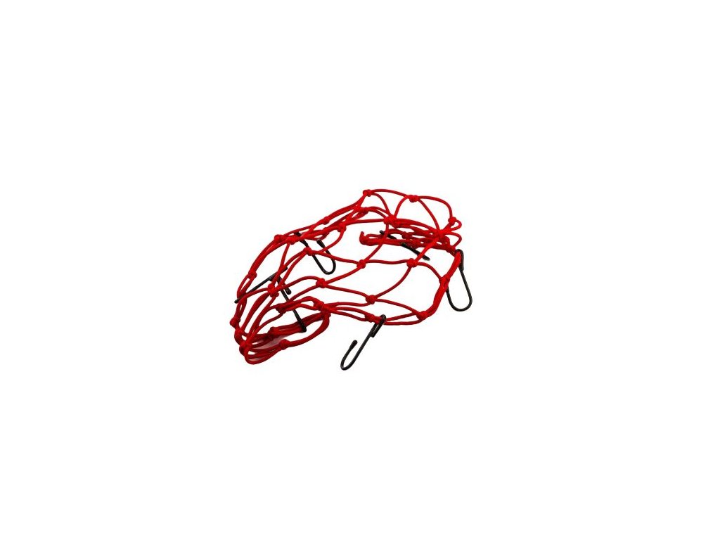 Červená elastická sieť, ktorá je perfektným doplnkom na prevážanie nákladu na motorke. Sieť má rozmery 350x350mm a je vyrobená z materiálu s vysokou odolnosťou a pružnosťou. To ju umožňuje prispôsobovať sa tvarom rôznych obalov. Po obvode má 6 kovových háčikov, ktoré umožňujú rýchle a bezpečné upevnenie siete. Háčiky sú potiahnuté plastom, aby nedošlo k poškriabaniu motocykla.Dodatočné parametre