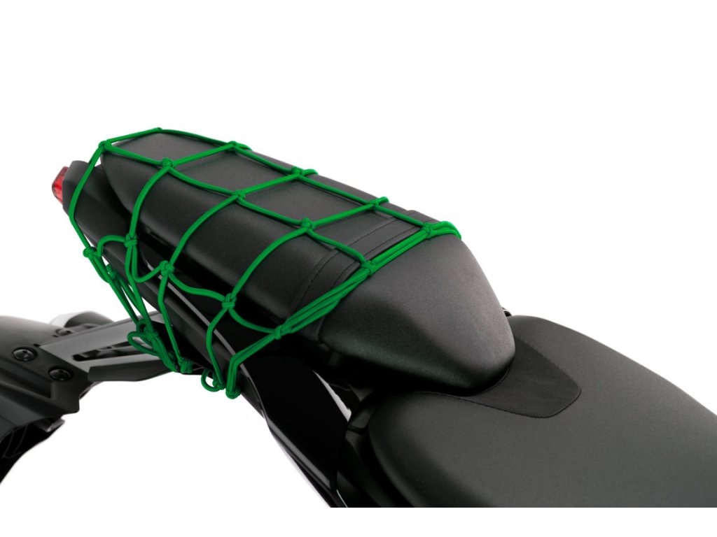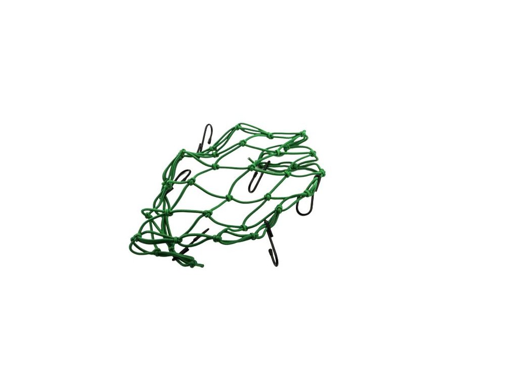 Zelená elastická sieť, ktorá je perfektným doplnkom na prevážanie nákladu na motorke. Sieť má rozmery 350x350mm a je vyrobená z materiálu s vysokou odolnosťou a pružnosťou. To ju umožňuje prispôsobovať sa tvarom rôznych obalov. Po obvode má 6 kovových háčikov, ktoré umožňujú rýchle a bezpečné upevnenie siete. Háčiky sú potiahnuté plastom, aby nedošlo k poškriabaniu motocykla.Dodatočné parametre