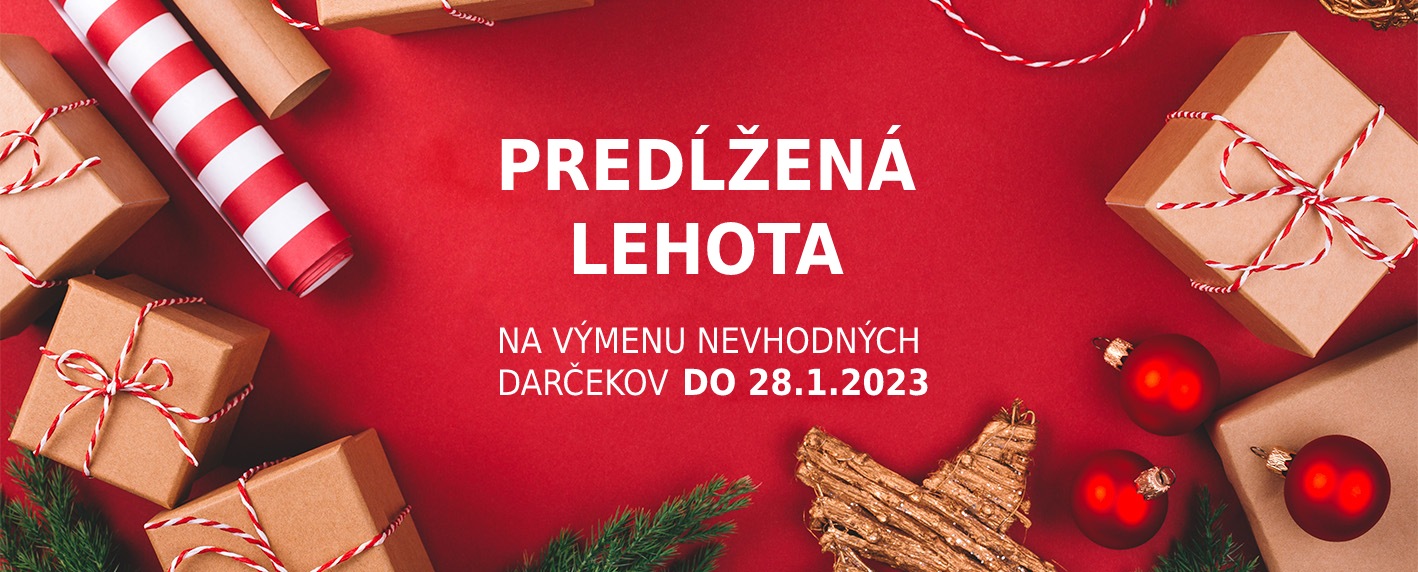 Aby pre Vás nebol výber darčekov stresujúci a nehonili sa Vám hlavou myšlienky typu zle zvolená veľkosť, farba či vhodnosť samotného darčeka, rozhodli sme sa pri tovare zakúpenom na našom e-shope a kamennej predajni v období od 15.11. do 20.12 2022 predĺžiť lehotu na výmenu a vrátenie tovaru až do 28. januára 2023.