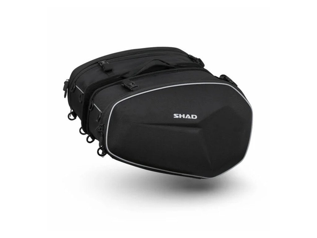 Rozšírené saddlebags s kapacitou 46 až 58 liters (2 units), pre plný face helmu. It ha 3 inštalácie modes na motorke, SHAD SR alebo SBH fixing systems pre compatible motorky alebo s univerzálnymi tapami. S SHAD fixing systems, maximum stability a aesthetic integrace k motorčeku je garantovaný s minimum hmotnosť, ktorá dáva soliditu k celej. Capacity: 1 full face helmet size XL Rozšírené z 23 až 29 litrov každý Compatible with SR, SBH a univerzálne binding Vyrobené z 900D polyesteru, thermoformed EVA pre jeho semi-rigid finish na ľudskú a vnútornú štruktúru v PES na reinforce. Complies with REACH regulations UV rezistencie z 1,500 hodín Reflective elements Carrying handle Zippers adapted for the use with gloves recommended: 2 kg každýDodatočné parametre