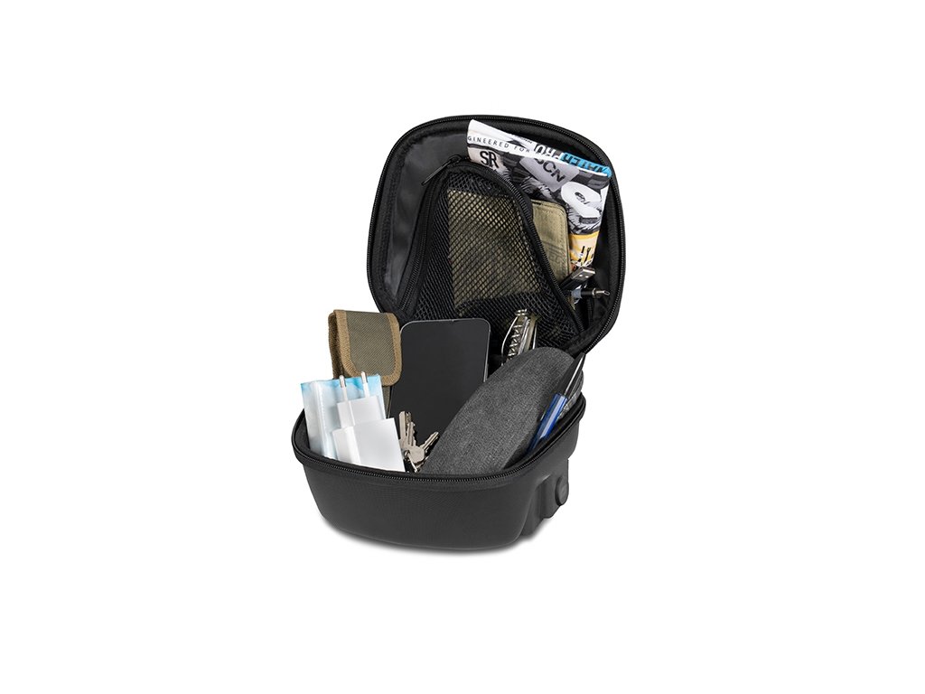 Tankvak E03C Click System Tank Bag je základná taška na nádrž z radu Click System od SHADu. Je navrhnutá ako dokonalý cestovný doplnok pre každodenné cestovanie a má ideálnu veľkosť pre telefón, peňaženku, cestovné doklady a ďalšie veci. Click System je jedinečná metóda upevnenia, ktorá nahrádza niekoľko skrutiek okolo viečka palivovej nádrže držiakom v tvare podkovy. Tašku na nádrž je potom možné zacvaknúť na miesto a uvoľniť jediným tlačidlom. Taška na nádrž E03C Click System je vybavená mnohými funkciami, vrátane zipsov vhodných pre rukavice, pevné konštrukcie, sieťovaných vreciek a tvaru prispôsobeného jazdcovi. Toto je štandardná, neuzamykateľná verzia. Na doplnenie sady je potrebné pridať montážnu sadu Click System určenú pre konkrétny motocykel. Objem 3 litre Rýchle odopínanie pomocou tlačidla Uzamykateľná k motocyklu Pevná konštrukcia udržuje tvar aj keď je prázdny Jednoduchá inštalácia iba za 3 minúty Polstrovaná rukoväť na prenášanie Ramenný popruh súčasťou balenia Odolný proti vlhkosti (vodotesný kryt je súčasťou dodávky) Vnútorné sieťované vrecko 1 2 roky záruka výrobcu Navrhnuté v BarceloneDodatočné parametre