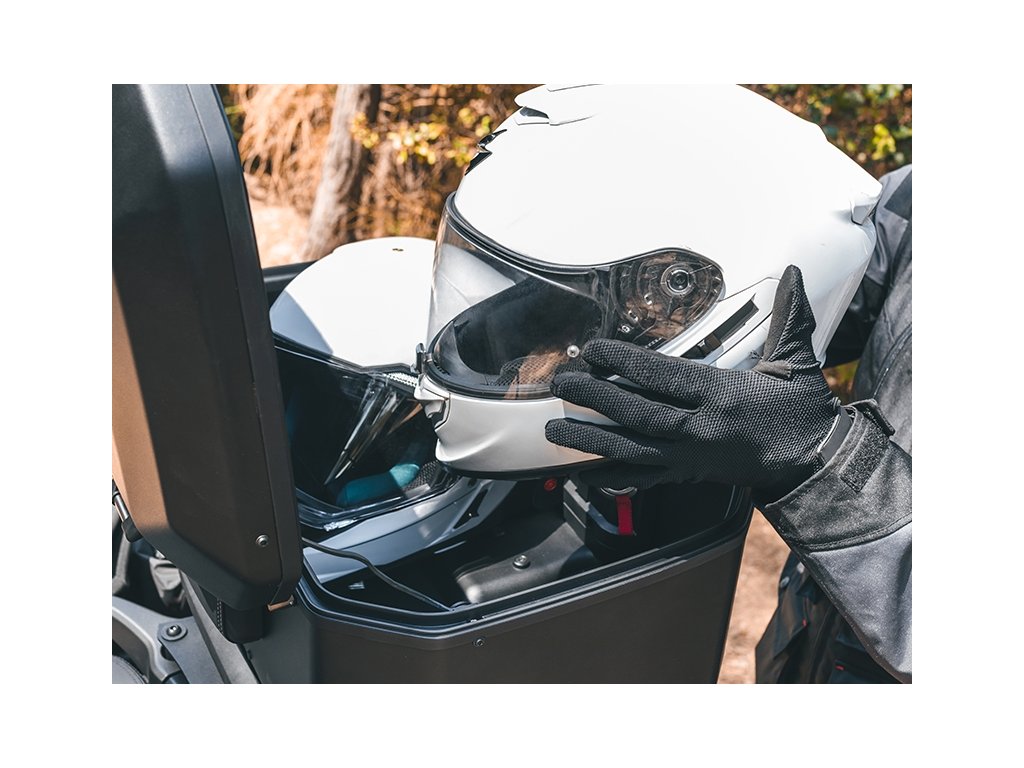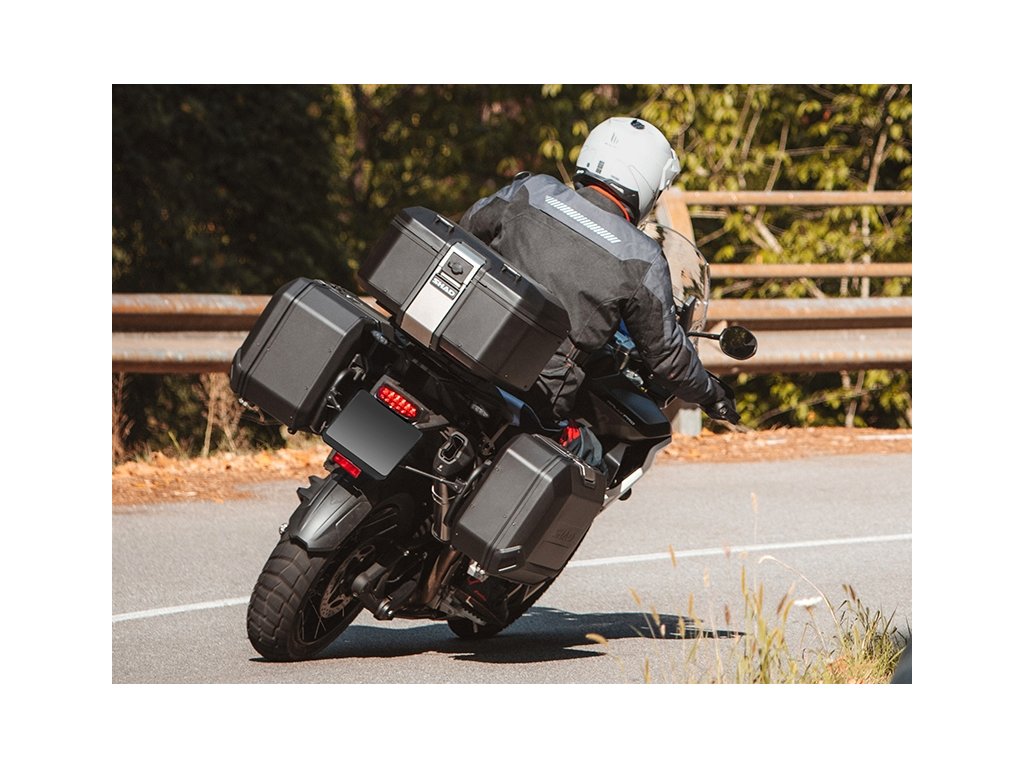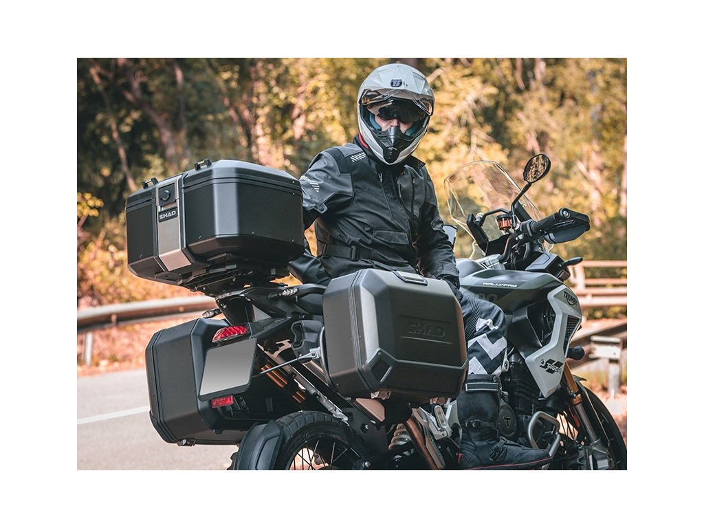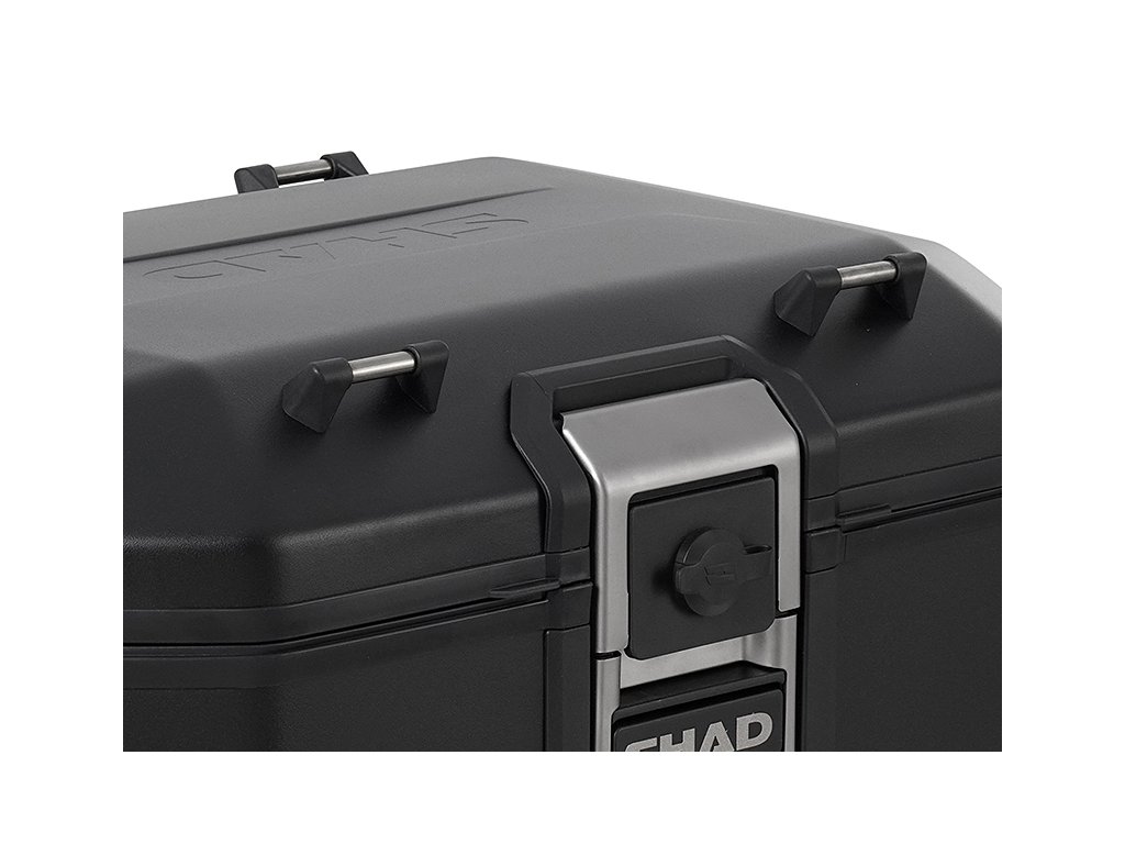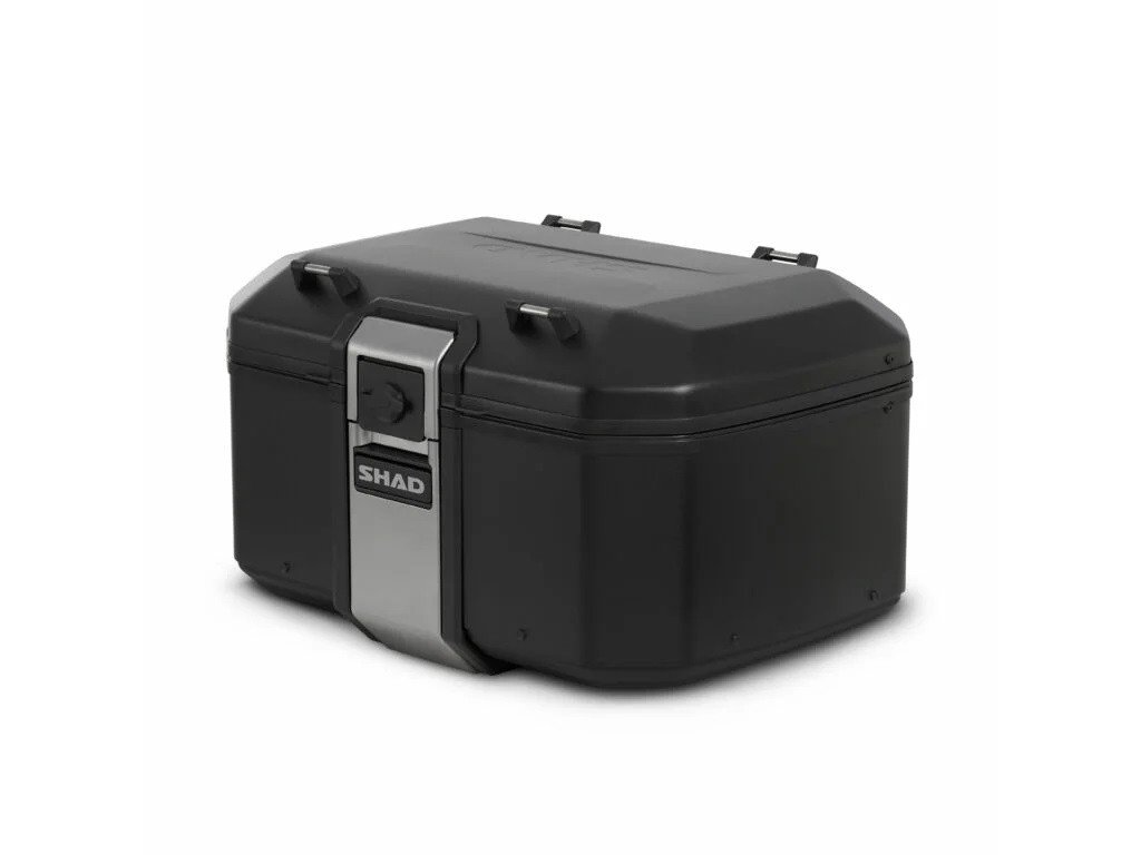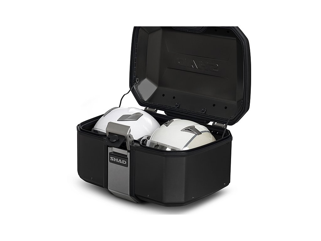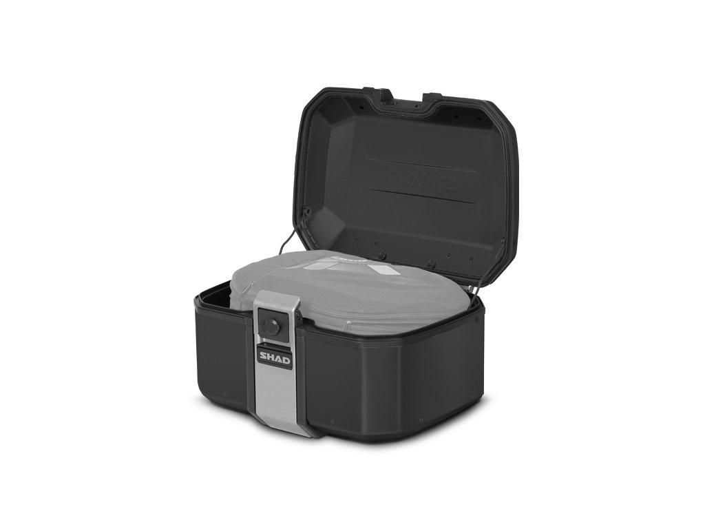 Vrchný kufor TERRA TR55 má kapacitu pre dve výklopné prilby a vyniká tým, že je s hmotnosťou 5,4 kg najľahším hliníkovým kufrom na trhu. Je navrhnutý a vyrobený 100% v Barcelone. Jeho inovatívny design je skvelým doplnkom každého adventure motocykla. TERRA Pure Black ponúka prémiový matný čierny lak na celom kufri. Špičkový kufor TERRA TR55 bol ocenený cenou ABC Awards vďaka svojmu dizajnu zameranému na riešenie kľúčových aspektov pre použitie na adventure motocykloch. TR55 má aerodynamickú integrovanú konštrukciu z tvrdenej hliníkovej zliatiny, pevnejšieho a ľahšieho typu hliníka, ktorý umožňuje znížiť hrúbku steny na iba 1,2 mm. Vďaka tomu vzniká kufor minimálnej hmotnosti pri maximálnej odolnosti. Rovnako ako pri všetkých hliníkových kufroch TERRA je súčasťou dodávky patentovaný systém "TERRA Lock System". Konštrukcia integrovaného zámku s madlom je vyrobená z priemyselnej nerezovej ocele AISI 304. Táto konštrukcia bola navrhnutá na rýchle použitie jednou rukou a umožňuje každému motorkárovi veľmi ľahko kufor otvoriť, zavrieť, vybrať a prenášať. K dispozícii sú tiež háky z nerezovej ocele AISI 304 na pripnutie ďalšieho nákladu. Rám kufra s gumovým tesnením chráni vnútorný priestor pred nepriaznivými poveternostnými podmienkami - kufor je vodeodolný. Vnútorná penová základňa navyše znižuje pohyb nákladu vo vnútri. Kľúče a zámková vložka kufra TR55 sú prémiovou verziou od spoločnosti SHAD so systémom, ktorý znižuje možnosť krádeže, a tiež s krytom, ktorý zabraňuje vnikaniu prachu. Vďaka vonkajším hákom z nerezovej ocele AISI 304 je možné pridať ďalší náklad. Pre montáž na motocykel potrebujete zakúpiť montážnu sadu SHAD Top Master a platňu (nie je súčasťou balenia kufra). K dispozícii sú tri varianty platne: Štandardná plastová platňa (D1B591PA), hliníková platňa (D1BTRPA) alebo čierna hliníková platňa (D1BTRPA2). Zámkové vložky je možné ľahko vymeniť: horné a bočné kufre tak môžete odomykať rovnakým kľúčom. Tretia cylindrickú zámkovú vložku pre horný kufor je súčasťou balenia každého pravého bočného kufra TERRA. Voliteľné príslušenstvo (môžete dokúpiť): Dvojdielna opierka (D0RI75) a rozšíriteľná vnútorná taška (X0IB10).Dodatočné parametre