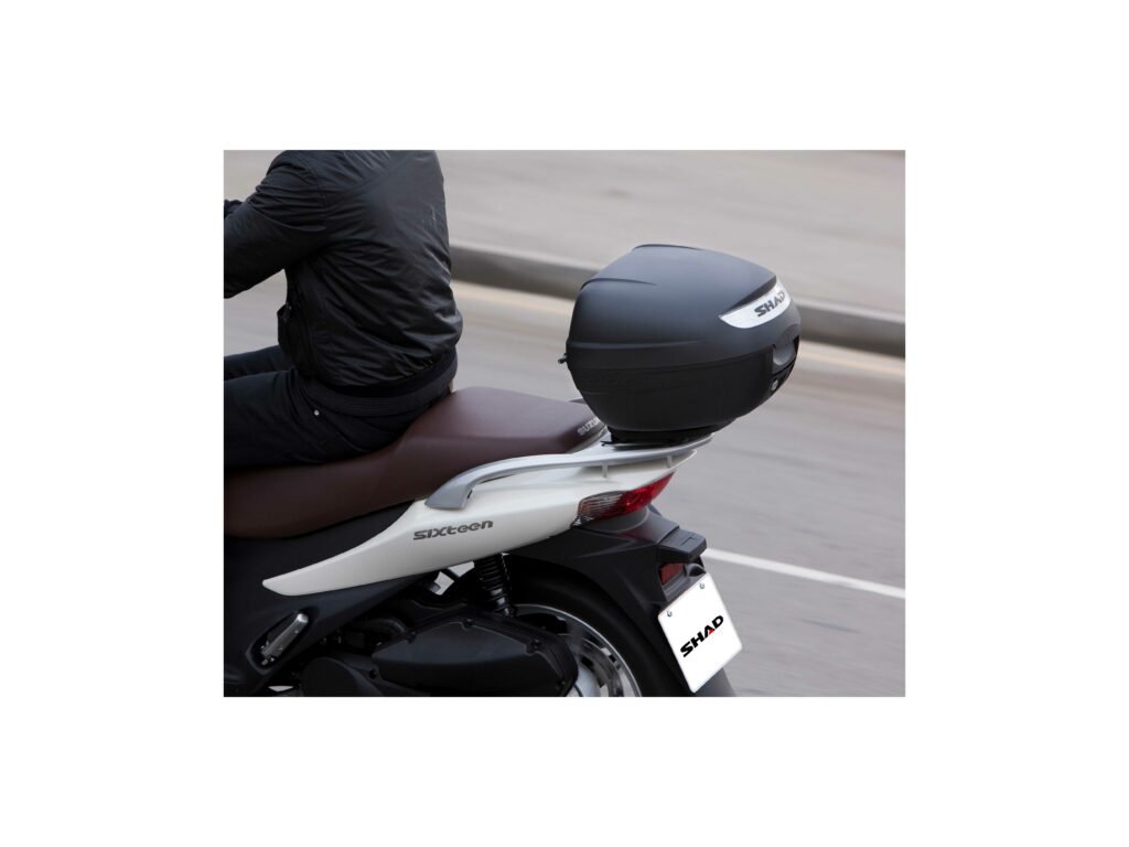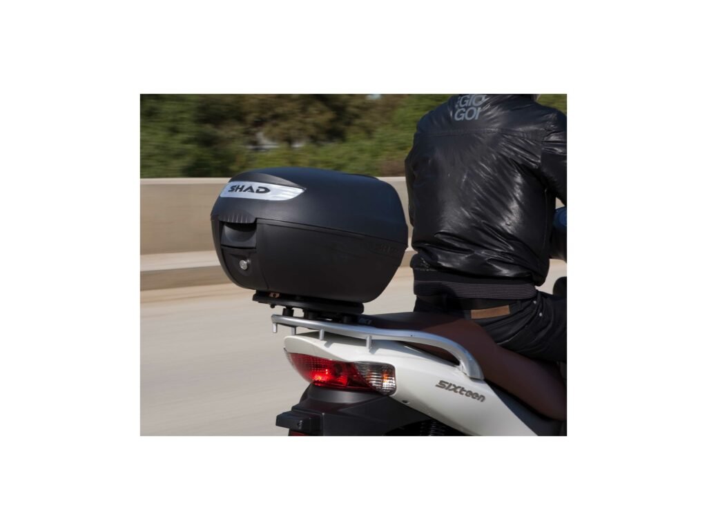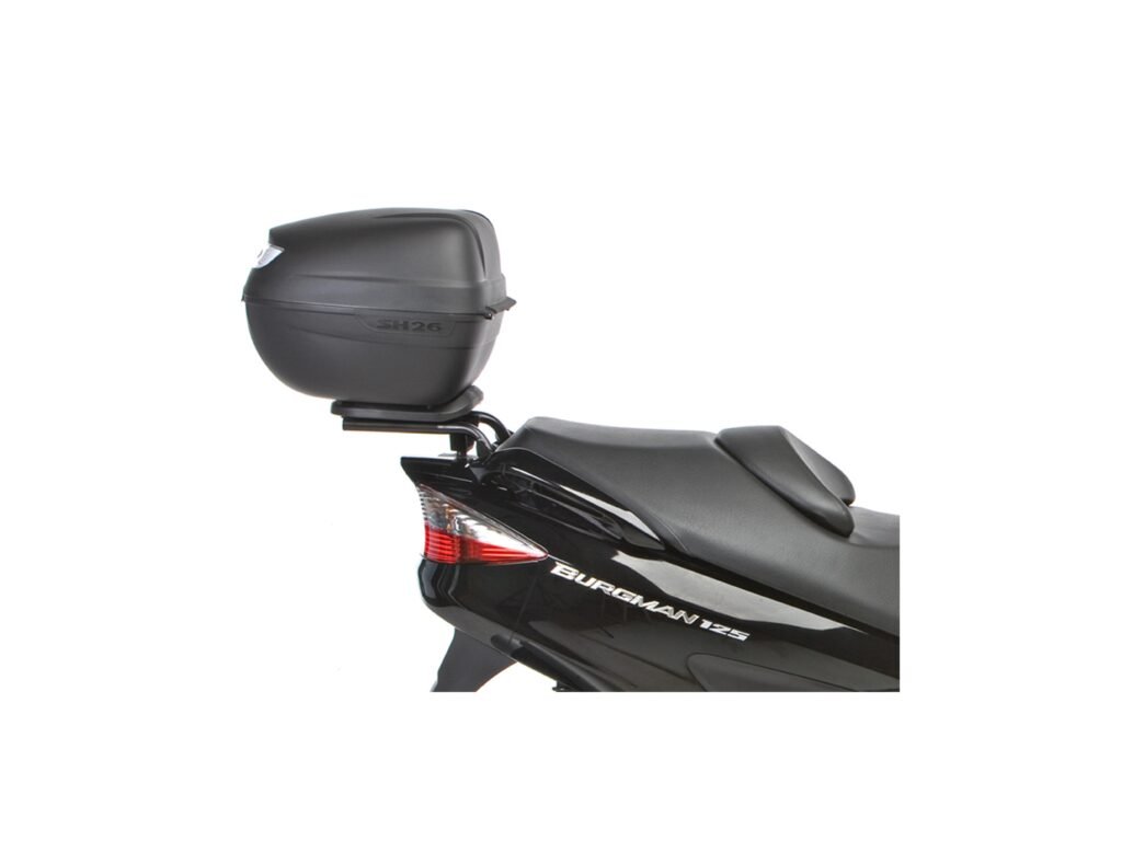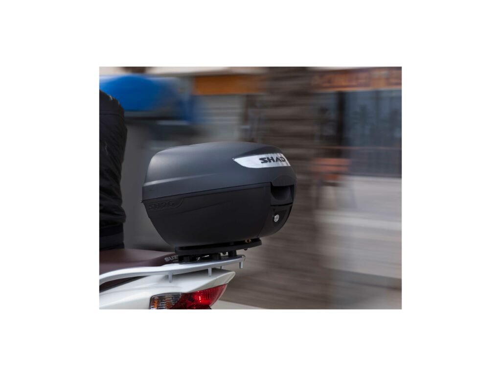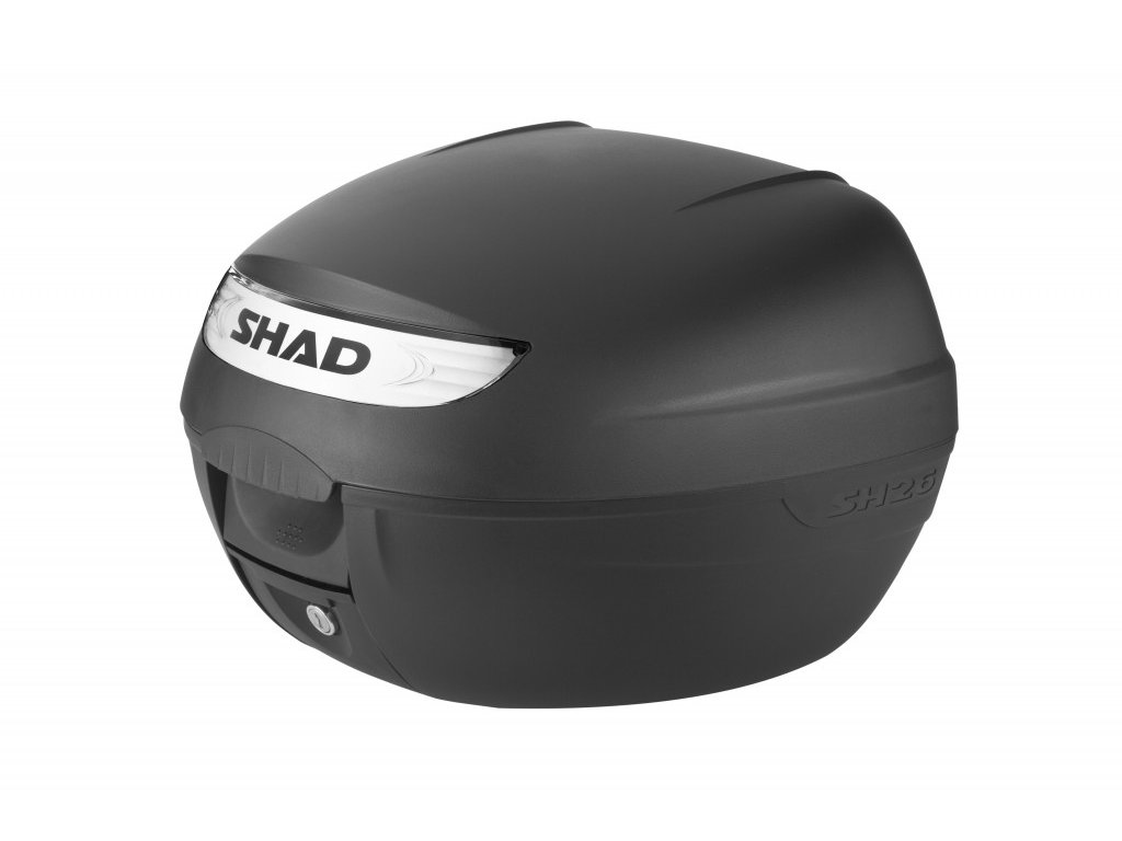 Vrchný kufor SH26 vhodný na uloženie jednej helmy SH26 je najmenší z radu vrchných kufrov SHAD, jeho kapacita je 26 litrov. Jedná sa o kompaktný a veľmi praktický vrchný kufor vyrobený z vysoko kvalitného tvrdeného polypropylénu, schopný pojať otvorenú helmu alebo malú integrálnu helmu. Kufor je vybavený zámkom a rovnako ako všetky vrchné kufre SHAD, je možné ho otvoriť a zavrieť iba jednou rukou, na otvorenie alebo zatvorenie nie je potrebný kľúč. Kľúč je nutný iba v prípade, že chceme kufor zamknúť. Kufor má úchytku, ktorá preberá rolu ergonomickej rukoväte pre ľahké prenášanie kufra. Ako voliteľné príslušenstvo je možné ku kufra dokúpiť brzdové svetlo (D0B29KL). Jedná sa o úsporné LED svetlo, ktorého montáž je veľmi jednoduchá. Toto svetlo zvyšuje bezpečnosť prevádzky, pretože motocykel sa s týmto svetlom stáva oveľa viditeľnejší zozadu. Rovnako ako všetky vrchné kufre SHAD (okrem TR48/TR37) je aj SH26 dodávaný s platňou a sadou montážnych skrutiek.Dodatočné parametre