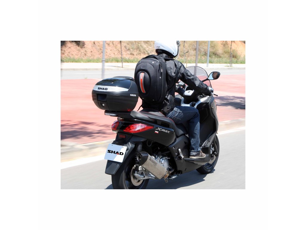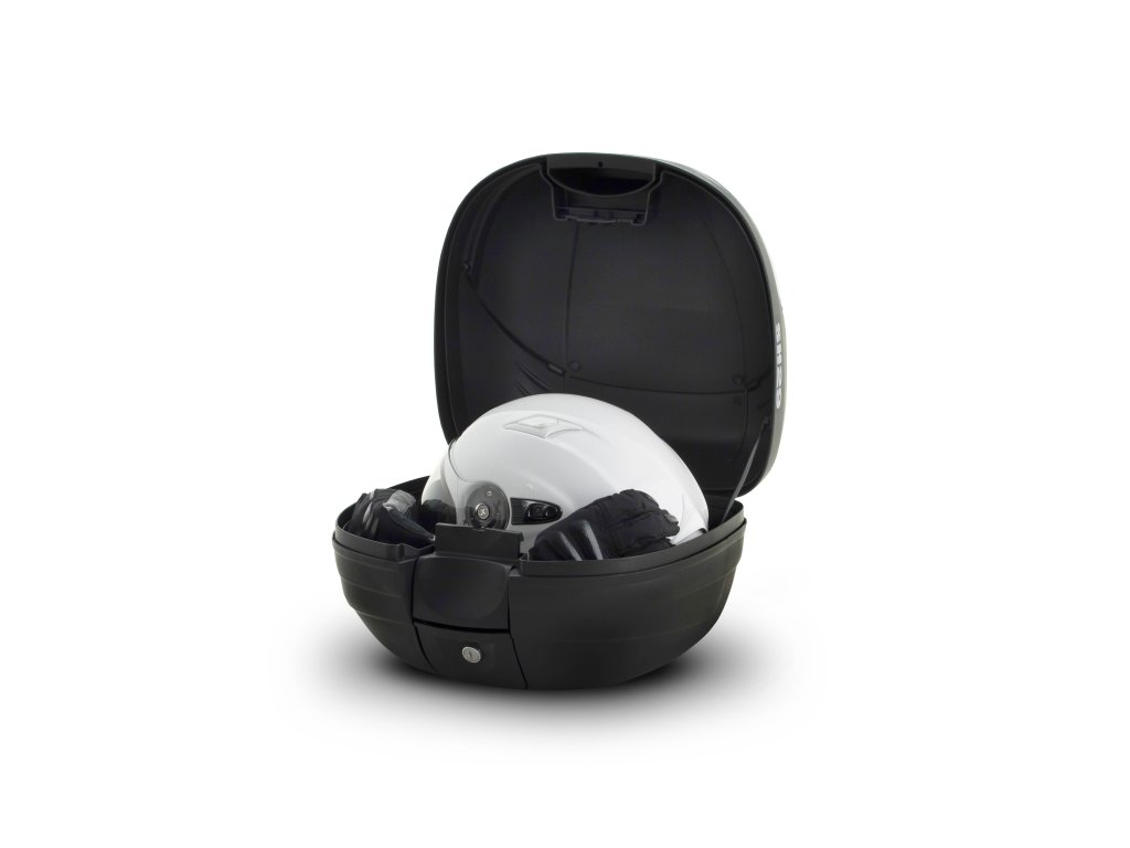 Vrchný kufor SH29 vhodný na uloženie jednej helmy Vrchný kufor SH29 je kompaktný a veľmi praktický vrchný kufor vyrobený z vysoko kvalitného tvrdeného polypropylénu, schopný pojať vyklápaciu helmu a rukavice. Jedná sa o základný model radu vrchných kufrov SHAD so zaobleným tvarom a dymovou odrazkou. Svojou veľkosťou je vhodný pre skútre a menšie motorky s nižším objemom. Kufor je vybavený zámkom a rovnako ako všetky vrchné kufre SHAD, je možné ho otvoriť a zavrieť iba jednou rukou, na otvorenie alebo zatvorenie nie je potrebný kľúč. Kľúč je nutný iba v prípade, že chceme kufor zamknúť. Kufor má úchytku, ktorá preberá rolu ergonomickej rukoväte pre ľahké prenášanie kufra. Pokiaľ kladiete dôraz na dizajn, určite oceníte možnosť výberu z rôznych farebných variantov krytu kufra: modrá, strieborná, biela, červená, lesklá čierna alebo variant bez laku, kedy si farbu môžete sami prispôsobiť podľa vlastného vkusu. Ako voliteľné príslušenstvo je možné ku kufru dokúpiť opierku a brzdové svetlo. Opierka (D0RI40) zaručuje väčšie pohodlie pre spolujazdcov. Brzdové svetlo (D0B29KL) je úsporné LED svetlo, ktorého montáž je veľmi jednoduchá. Toto svetlo zvyšuje bezpečnosť prevádzky, pretože motocykel sa s týmto svetlom stáva oveľa viditeľnejší zozadu. Rovnako ako všetky vrchné kufre SHAD (okrem TR48/TR37) je aj SH29 dodávaný s platňou a sadou montážnych skrutiek.Dodatočné parametre