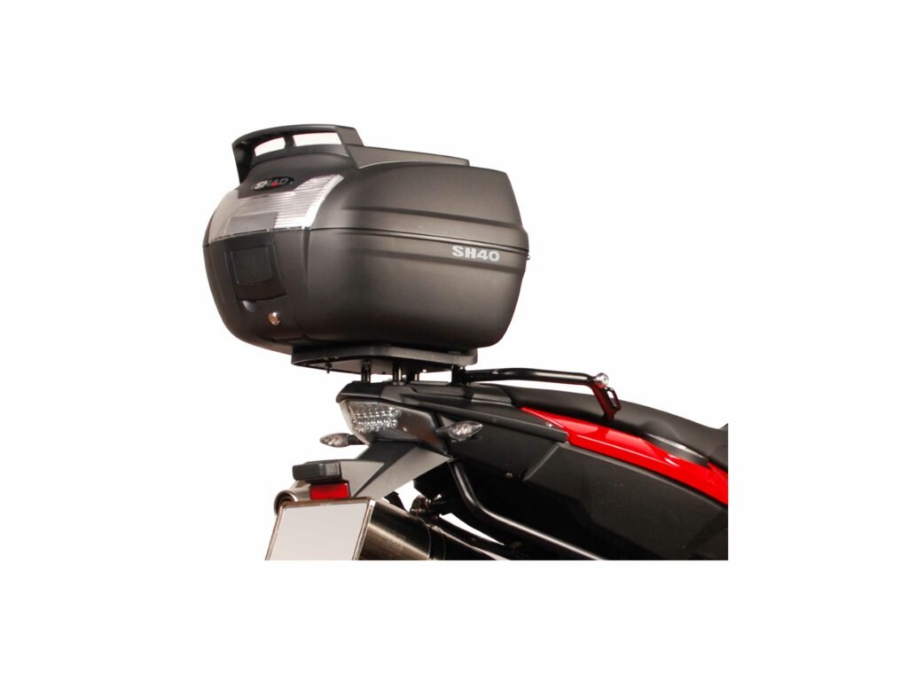 Vrchný kufor SH40 Cargo s kapacitou pre jednu integrálnu helmu alebo dve helmy: integrálnu a otvorenú. SH40 Cargo je ideálny pre tých, ktorí používajú motorku ako pracovný nástroj. Tento vrchný kufor je vyrobený z vysoko kvalitného tvrdeného polypropylénu. Je to kufor strednej kapacity so širokým vnútorným priestorom vhodným pre väčšie predmety ako 2 otvorené helmy alebo jednu integrálnu helmu, ale aj pre sadu nástrojov, notebook a pod. Tento kufor je schopný odolať extrémnym teplotám, snehu i dažďu a zároveň chráni obsah pred nárazmi a poškodením. Súčasťou tohto kufra je praktická plastová horná mriežka, ktorá zvyšuje kapacitu kufra pri zachovaní rovnakého maximálneho zaťaženia. Má tiež špecifické úchyty pre popruhy na zaistenie a držanie nákladu. Zabezpečenie systémom Handle Lock ponúka dvojitý zámok, ktorý jednak pripevňuje kufor k motocyklu a zároveň uzamyká vrchný kufor. Kufor má tiež rukoväť pre ľahké prenášanie pokiaľ ho zložíme z motorky. Súčasťou kufra sú popruhy ktoré zaisťujú, že sa obsah vo vnútri nepohybuje. Rovnako ako všetky vrchné kufre SHAD, je možné aj tento otvoriť a zavrieť iba jednou rukou, na otvorenie alebo zatvorenie nie je potrebný kľúč. Kľúč je nutný iba v prípade, že chceme kufor zamknúť. Ako voliteľné príslušenstvo je možné ku kufru dokúpiť opierku a brzdové svetlo. Opierka (D0RI60) zaručuje väčšie pohodlie pre spolujazdcov. Brzdové svetlo (D0B40KL) je úsporné LED svetlo, ktorého montáž je veľmi jednoduchá. Toto svetlo zvyšuje bezpečnosť prevádzky, pretože motorka sa s týmto svetlom stáva oveľa viditeľnejšou zozadu. Rovnako ako všetky vrchné kufre SHAD (okrem TR48/TR37) je aj kufor SH40 Cargo dodávaný s platňou a sadou montážnych skrutiek.Dodatočné parametre