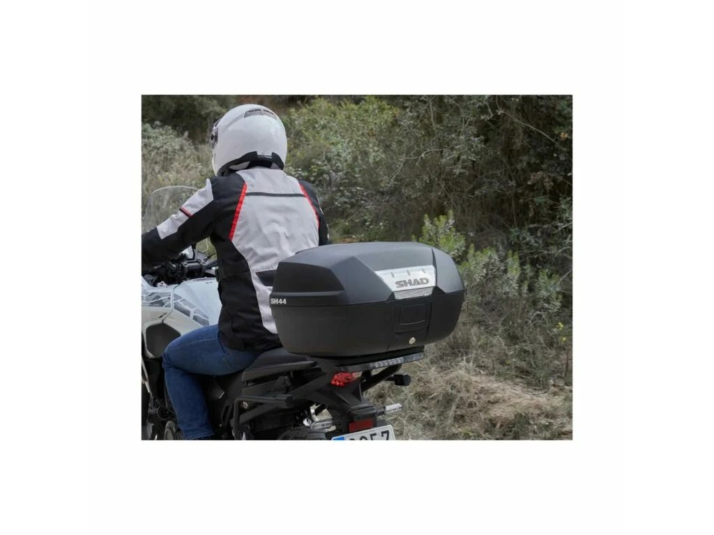 SH44 je vrchný kufor, do ktorého sa zmestia 2 integrálne prilby, ideálne pre motocykle a veľké skútre. Bezpečnosť zaisťuje „Double Locking System“, vďaka ktorému je kufor zamknutý k motocyklu a je zamknutý aj prístup do úložného priestoru. Hranatý tvar je inšpirovaný cestovnými kuframi a umožňuje prepraviť náklad s veľkým objemom. Kufor má špeciálne gumové tesnenie, ktoré zlepšuje utesnenie a chráni vniknutie vody a prachu. Ku kufru môžete vybrať aj príslušenstvo - chrbtová opierka, vnútorná taška a brzdové svetlo.Dodatočné parametre