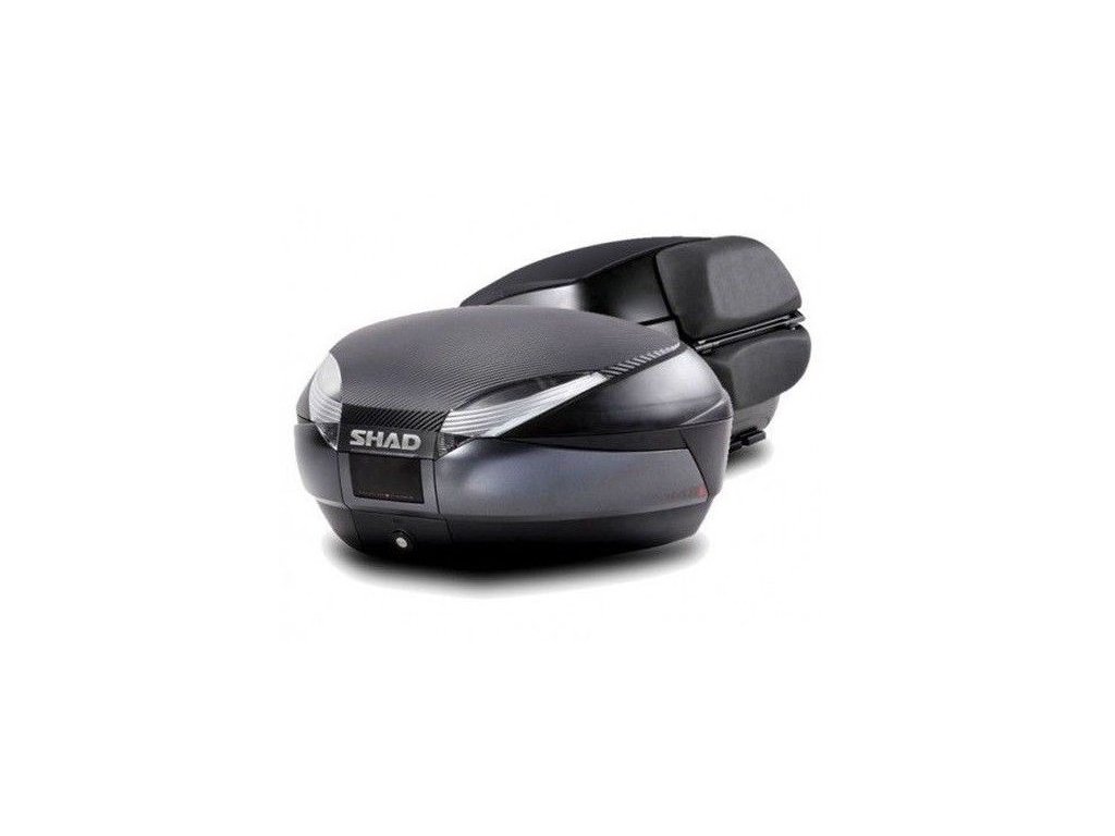 Vrchný kufor na motorku SHAD SH48 D0B48306R Tmavo šedý s opierkou, karbónový kryt a zámok PREMIUM SMART