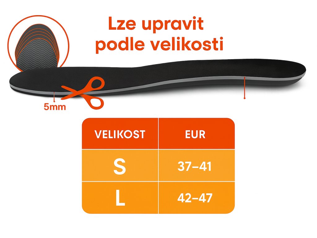 Vložky je možné upraviť podľa veľkosti obuvi jednoduchým zastrihnutím. Veľkosť je možné prispôsobiť zastrihnutím podľa vyznačených línií – menší variant je vhodný pre veľkosti 35-40 (230-269 mm) a väčší pre veľkosti 41-46 (269-309 mm). Vyberateľné batérie sú umiestnené v mäkkých, nastaviteľných popruhoch, ktoré je možné upevniť na hornú alebo dolnú časť lýtka. Riešenie je stabilné a neobmedzuje v pohybe.